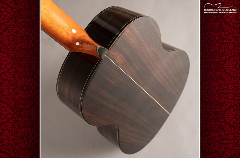 Die A5Z von Aranjuez liefert mit ihrer massiven Decke aus kanadischem Zedernholz und dem Korpus aus furniertem Palisander einen direkten, druckvollen und warmen Klang. Das Instrument hat eine