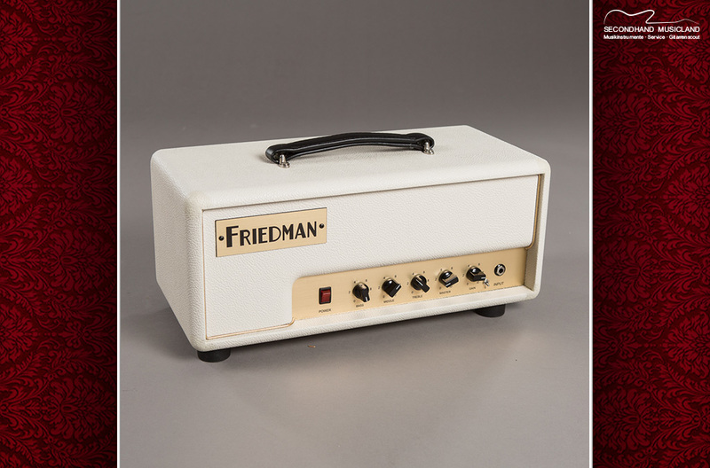 Ein serieller Einschleifweg, ansonsten ist der Amp gnadenlos auf Rock getrimmt. In den Genuss eines cleanen Sounds kommt man daher auch nur dann, wenn man die Gitarre leise dreht. Grundsätzlich orientiert sich Friedman hier am britischen Soundideal von Marshall, mit einem leicht voxigen Unterton und mit weitaus höheren Gainreserven. Das handliche Topteil wiegt gerade einmal 9 Kilo und erzeugt zusammen mit der geschlossenen 1 x 12 Box oder 2x12 Box ein anständiges Brett. Kein Wunder, denn mit 20 Watt Endstufenleistung bewegt man sich schon in ernstzunehmenden Regionen, nicht nur in kleinen Clubs.