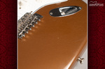 Die Gitarre wurde leicht "geaged", hier wurde der Lack bearbeitet, so dass dieser nun gleichmäßige leichte, kleine cracks im Klarlack hat... ..