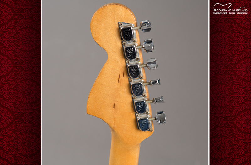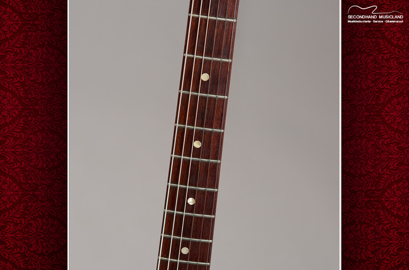 Dies ist eine typische Tanzmusiker Strat, die sehr viel gespielt wurde. Die Bundstäbchen sind noch original, aber nach über 40 Jahre etwas flach gespielt.